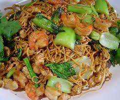 Masukkan udang dan ayam, aduk rata, lalu tambahkan wortel, taoge dan sawi